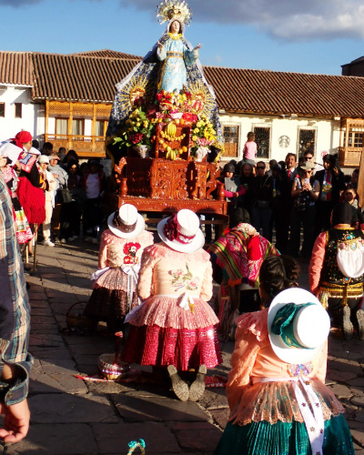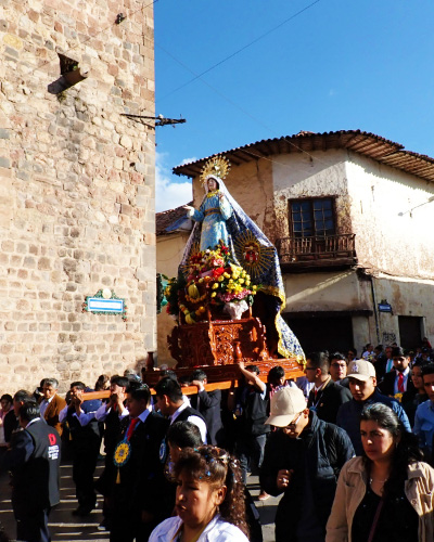 Surrounded by the vibrant life of the plaza, the statue serves as a reminder of Cusco’s rich heritage. Locals and tourists alike gather around and taking photos.