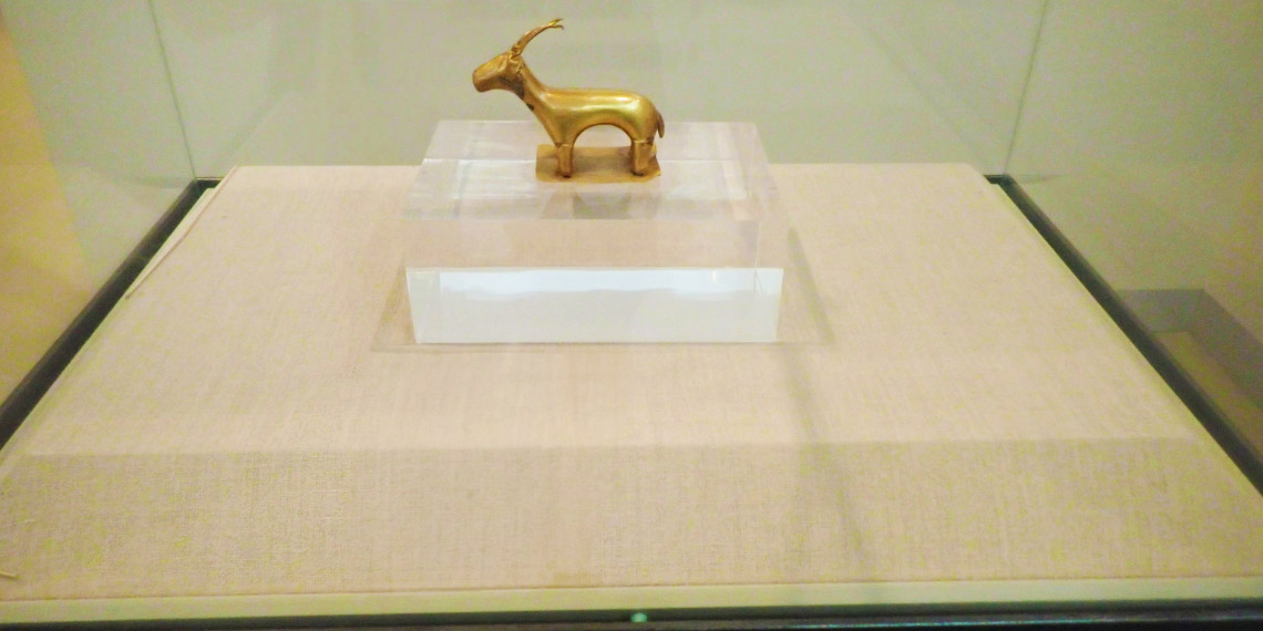 Golden Goat or Ibex Statue at the Prehistoric Museum