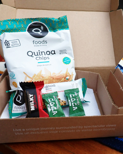 Shortly after we settled in, the staff began serving snacks. We were treated to quinoa chips, a quinoa cereal bar, some chocolates, and coca candies, all of which reflected the local flavors of Peru. As we enjoyed the snacks, an announcement came over the speakers, letting us know that a mini show was about to start.