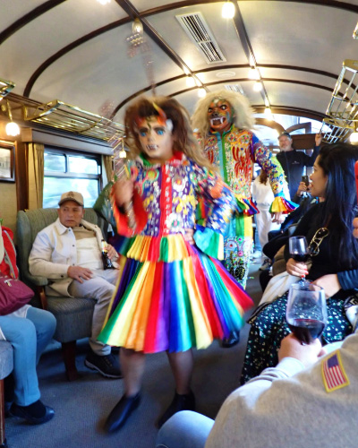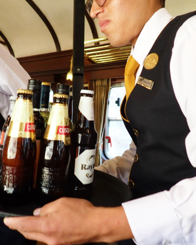 Two performers dressed in vibrant traditional costumes began dancing a Peruvian folk dance, with live music playing in the background. The performers’ energy was contagious, and soon many of us were clapping along to the rhythm. The train staff also served alcoholic drinks, beers, and sodas to add to the festive mood.