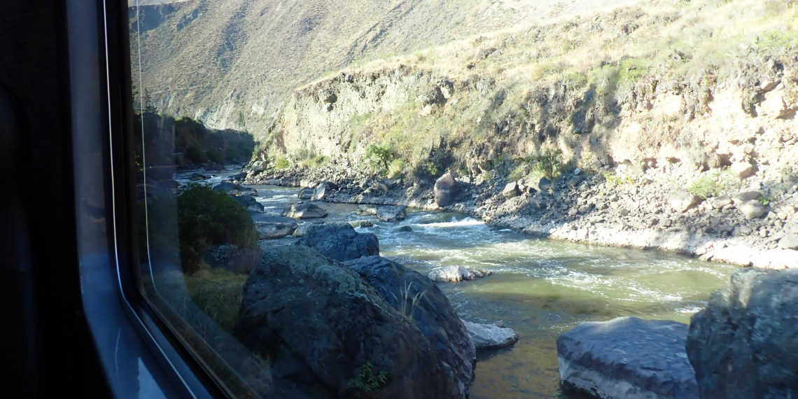 Once settled, I boarded the PeruRail Vistadome Observatory train, which would take me the rest of the way to Aguas Calientes. That journey was also around an hour and a half, and the views were stunning.